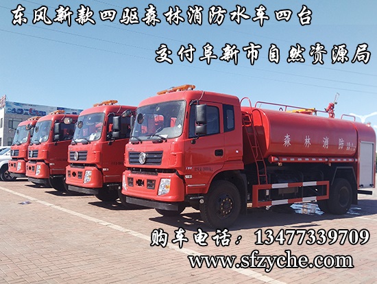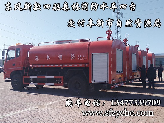 遼寧省阜新市自然資源局下屬的林業(yè)和草原局森林防火辦公室采購的東風(fēng)新款四驅(qū)森林消防水罐車具體參數(shù):東風(fēng)四驅(qū)越野森林消防水罐車_東風(fēng)11.1噸四驅(qū)消防水車_國五四驅(qū)越野森林滅火水車_東風(fēng)4×4越野SCS5183GPSEQ型四驅(qū)綠化噴灑車簡介:采用東風(fēng)EQ2180GD5DJ型越野汽車底盤,東風(fēng)153寬體駕駛室(選裝D913新款駕駛室),4×4驅(qū)動,康明斯ISB190 50國五發(fā)動機(jī),六檔變速箱,東風(fēng)商用車橋,前驅(qū)動橋3.8噸,后橋10噸,10.00R20輪胎,軸距4500mm,電動玻璃,方向助力,斷氣剎,ABS。罐體采用優(yōu)質(zhì)碳鋼Q235板材,板材厚度4mm,罐體容積11.1立方,安裝夾心取力器,后置泵箱,消防栓接口左右各一個,消防炮采用PS30-50D消防水炮,流量40L/S/1.0MPa 水射程:≥50m,消防泵采用常壓消防泵型號:CB10/40車用消防泵,流量:40L/s,壓力:1.0MPa,駕駛室頂部安裝長條警燈帶喊話器,全車顏色橘紅,兩側(cè)噴涂白色森林消防字樣。