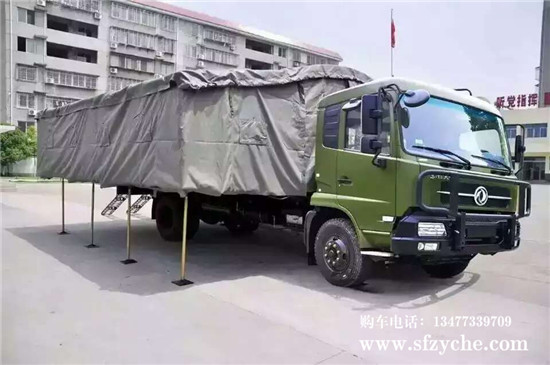東風(fēng)原廠EQ5118XZS6D15型宿營車和EQ5120GA1型天錦宿營車6.1米篷布配套直供。適用于東風(fēng)EQ5118XZS6D15宿營車和EQ5120GA1天錦宿營車等東風(fēng)系列車型,軍用宿營車供部隊(duì)野外住宿使用。車箱內(nèi)部尺寸6100mmX2210mmX1850mm。宿營車車廂在采用折疊式雙邊板,增加滑道內(nèi)設(shè)支撐桿,可拆式帳篷。平時(shí)可作為普通高欄板軍車使用;部隊(duì)需野營時(shí),放平雙邊板并支撐好,搭好帳篷,就可以形成一座面積達(dá)38㎡的高臺(tái)帳篷,可供36人住宿用。 東風(fēng)原廠宿營車篷布總成價(jià)格一套為5300元含稅。
