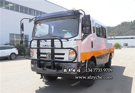 出口專供東風(fēng)全時(shí)四驅(qū)越野工程車全時(shí)四驅(qū)半承載式工程車,完美的將載人載貨的功能結(jié)合一起來。它,三段式設(shè)計(jì):駕駛室,乘客區(qū)(10人容量),貨倉(載重2.5T)。