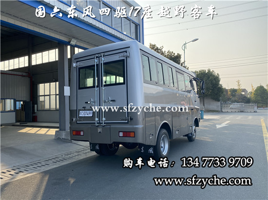 EQ6600ZT6D型17座四驅(qū)客車(chē)配置如下:采用東風(fēng)原廠4×4越野底盤(pán)型號(hào)EQ6580KZ6T,發(fā)動(dòng)機(jī)為:濰柴170馬力國(guó)六發(fā)動(dòng)機(jī)WP4.1NQ170E61,排量4.088L帶增壓、法士特6擋變速箱、軸距3300mm,整車(chē)外形尺寸長(zhǎng)寬高:(5990×2280×2750,3030)mm 驅(qū)動(dòng)形式:4×4 東風(fēng)分時(shí)四驅(qū)、離合助力,方向助力,斷氣剎,鼓式自動(dòng)、車(chē)橋?yàn)闁|風(fēng)德納,輪胎為8R19.5真空輪胎后雙胎、后備行李箱,工具箱2個(gè),粘接式推拉玻璃、鋁花紋地板,中檔座椅,整車(chē)座椅安全帶,手動(dòng)式外擺門(mén),正副司機(jī)門(mén)、整車(chē)窗簾,滅火器1個(gè),備胎一個(gè)。選裝配置:東風(fēng)派恩大功率頂置空調(diào),獨(dú)立柴油鍋爐暖風(fēng),頂置警燈帶喊話(huà)器,頂置行李架帶爬梯,后對(duì)開(kāi)門(mén)等。