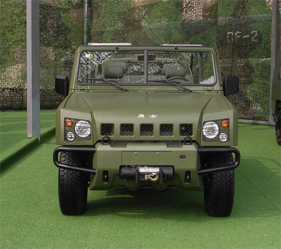 2007年8月2日,北汽控股公司在位于北京市順義區(qū)的北京汽車制造廠有限公司隆重舉行慶祝建軍80周年暨北京·勇士下線儀式。北汽勇士BJ2022型4×4軍用越野車自2007年列裝部隊(duì)以來,“勇士”越野車作為我軍第二代軍用指揮車,常年活躍在演訓(xùn)場(chǎng)上和邊防線上。2008年、2009年北汽勇士軍用車參加并圓滿完成汶川地震搶險(xiǎn),打擊暴恐勢(shì)力等多次重要軍事行動(dòng)。“勇士”是由北京汽車制造廠有限公司自主開發(fā)的,擁有完全自主知識(shí)產(chǎn)權(quán)的中國21世紀(jì)0.5噸/0.75噸級(jí)越野車!坝率俊蓖獠吭煨褪窃谘芯苛藲W、美、日三大流派越野車造型發(fā)展趨勢(shì)的基礎(chǔ)上,結(jié)合中國文化特色和中國越野車的特點(diǎn)而設(shè)計(jì)的,具有原創(chuàng)性。