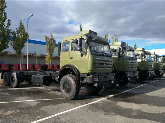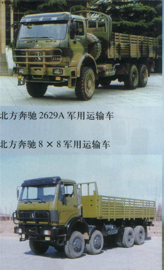 北奔7噸級4×4車型1926A軍用越野車和北奔10噸級6×6型2629A軍用越野車。