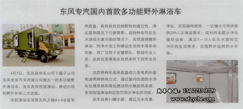 東風(fēng)專(zhuān)汽推出國(guó)內(nèi)首款東風(fēng)四驅(qū)多功能野外淋浴車(chē)