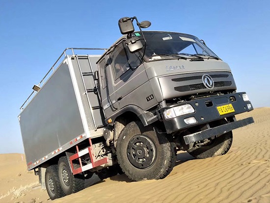 東風(fēng)六驅(qū)國五越野廂式車簡介:采用東風(fēng)原廠六驅(qū)國五越野底盤EQ2220GD5DJ型,駕駛室為老款153,新款D913兩種可以選擇,康機(jī)190馬力帶增壓,機(jī)械式六檔變速箱,3.5噸軍檢分動箱,4.5噸雙聯(lián)式軍用驅(qū)動前橋,5噸軍用貫通式雙后橋,方向助力,離合助力,前橋介入高低檔均采用電控式,315/80R22.5越野輪胎,軸距3500+1250mmABS,隨車工具及備胎各一套。