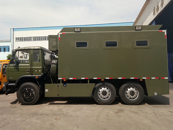 相關(guān)車型東風(fēng)國五六驅(qū)越野自行式炊事車_東風(fēng)軍用六驅(qū)炊事車_六驅(qū)野戰(zhàn)自行式餐廚車為部隊提供一種機(jī)動、高效的專用現(xiàn)場飲食保障裝備,滿足部隊平時及野外值勤時的主副食的飲食保障工作,并解決部隊行進(jìn)中不停車做飯菜的需要及供應(yīng)飲用水的需求。六驅(qū)自行炊事車功能簡介:該裝備主要編配于部隊,為部隊官兵野外作業(yè)時提供良好的飲食保障:具有制作食品、保溫食品和儲存食品的空間與功能、并具有提供開水和餐具消毒的功能。