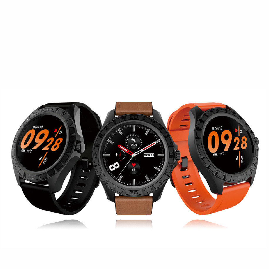 1.3”全圓全觸顯示屏 獨(dú)家個(gè)性化精美表盤,且APP能推送 24 H連續(xù)實(shí)時(shí)動(dòng)態(tài)心率 300mAH大容量電池,續(xù)航時(shí)間達(dá)15天以上 支持23種多運(yùn)動(dòng)模式 支持17國的本地化UI語言 支持IP68防水級(jí)別 搭配皮質(zhì)表帶和TPU表帶,兼顧商務(wù)和運(yùn)動(dòng)風(fēng)格 可接受為客戶免費(fèi)定制表盤,彩盒包裝,表帶顏色,表扣鐳雕LOGO內(nèi)容