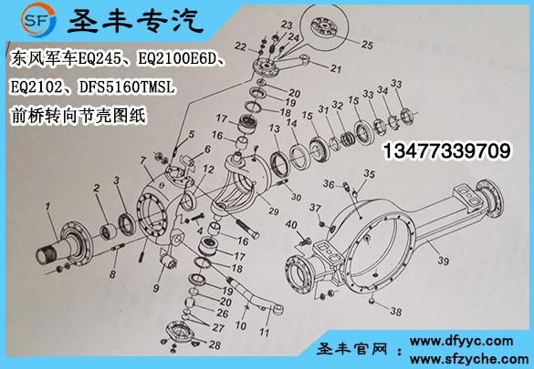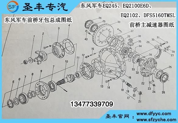 東風EQ2102六驅平頭軍車前橋零件號及對應名稱: